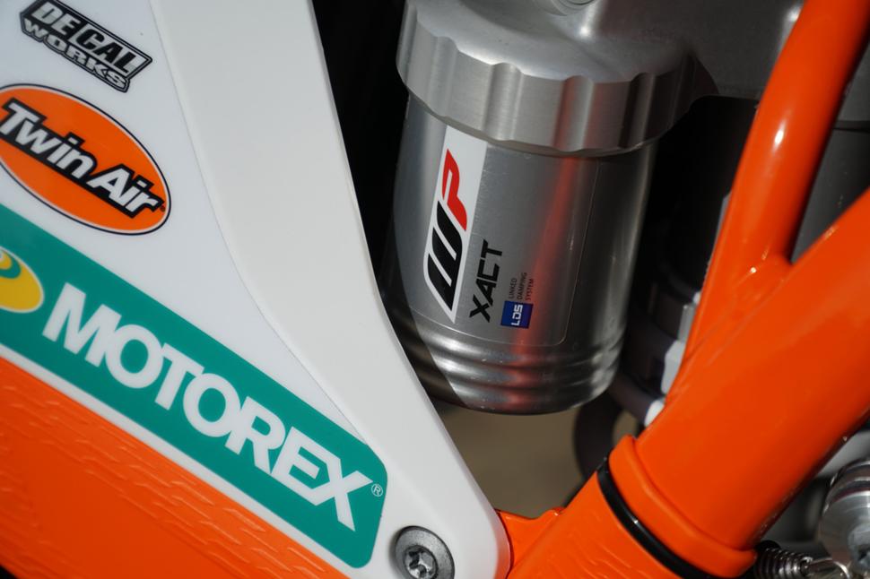 KTM обновил подвеску. Модели SX и XC будут поставляться с вилкой и задним амортизатором WP XACT, в то время как W и EXC по-прежнему будут комплектоваться подвеской XPLOR. В частности, вилка Factory Edition имеет откалиброванные поршни для более плотного сопряжения, что даёт возможность увеличить давление в перьях вилки, а также новые траверсы. У заднего амортизатора есть новый регулятор преднатяга для более точной настройки.