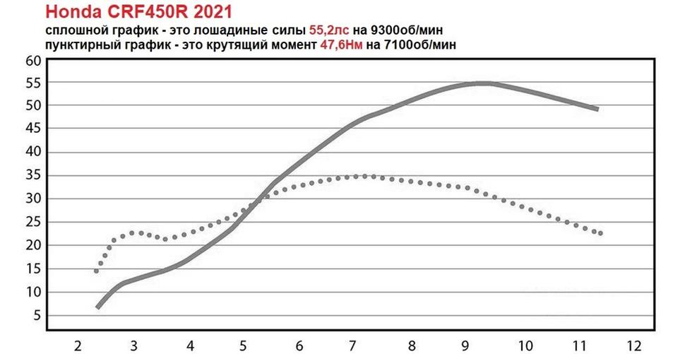 Учитывая, что Honda CRF450R 2021 единственная из кроссовых мотоциклов 2021 года, в двигатель которой производителем были внесены изменения, нам стало чрезвычайно любопытно прогнать новинку на диностенде (график ниже - в галерее).