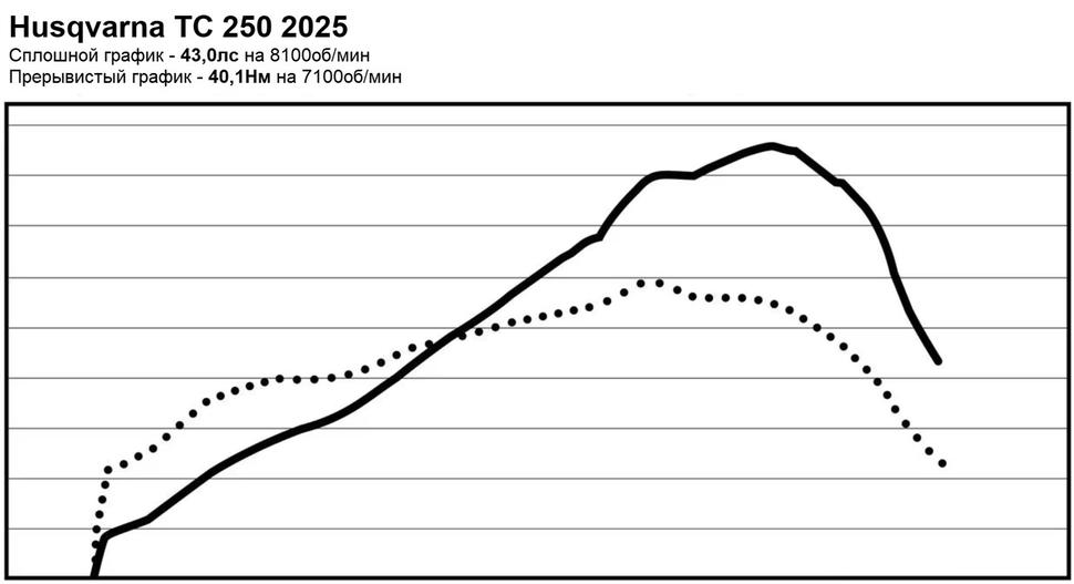 Husqvarna TC 250 Heritage 2025 года - один из таких мотоциклов. Винтажная расцветка удачно подчёркивает ряд современных технологий, в частности, впрыск в полость дроссельной заслонки (TBI), электронный мощностный клапан и электростартер. На диностенде TC 250 2025 года показала пиковые 43,0лс на 8100об/мин и 40,1Нм на 7100об/мин. Для сравнения, это на 2,6лс больше, чем у Husqvarna FC 250 2025 года и всего на 4,2Нм меньше, чем у Husqvarna FC 450 2025 года.