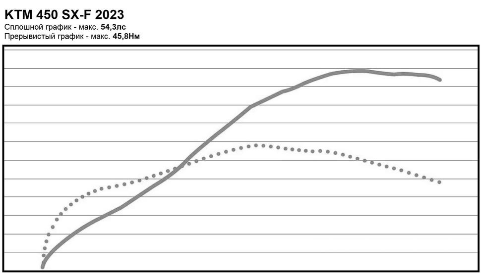 Из года в год он оказывается в числе лидеров по мощности и крутящему моменту, а после полного обновления на 2023 модельный год его инжекторный четырёхтактный мотор жидкостного охлаждения с одним верхним распредвалом произвёл на диностенде 54,3лс и 45,8Нм. По сравнению с моделью 2022 года он просел на 0,7лс максимальной мощности и почти 0,7Нм пиковой тяги, но зато новый мотор производит больше мощности и крутящего момента в диапазоне с холостых до 4300 и с 10400 до 11200об/мин.
