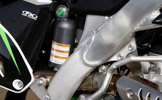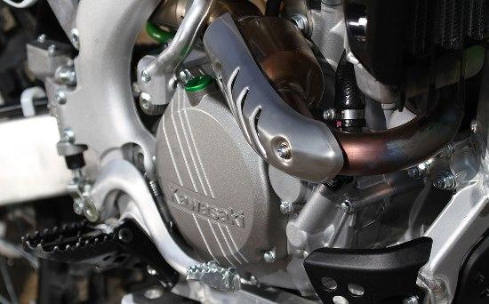 Выбиться в лидеры гонщику помогает новый нижний инжектор в совокупности с исправленной системой ECU, имеющей новый магнитный ротор с большей инерцией и Т-образный поршень. С возросшей мощью модели, Kawasaki решили нанести заключительный удар по рынку запчастей, поскольку передний тормозной диск KX450F увеличен до 270 мм, в то время как диаметр заднего составляет 240 мм.