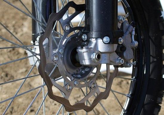 Касательно вышеупомянутых поворотных характеристик KX250F, подвеска достаточно держит удар для того, чтобы позволить вам крепко сидеть на байке. Лепестковые диски показывают отличную тормозную способность, а ход вилки позволяет сохранять полное сцепление с поверхностью.