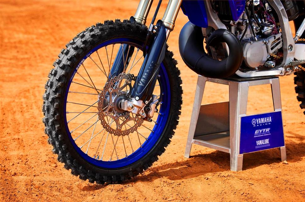 тормозная система YZ250 на 2022 год получила масштабные обновления. В переднем суппорте были увеличены поршни с 22,7 до 25,4мм, жёсткость суппорта повышена на 30%, увеличилась площадь фрикционных накладок на тормозных колодках и использован новый состав, а площадь рабочей поверхности тормозного диска увеличилась на 16%. Задний тормозной контур стал примерно на 100г легче благодаря уменьшению на 5мм диска - до 240мм. Оба диска обладают повышенной способностью к поглощению и распределению тепла.