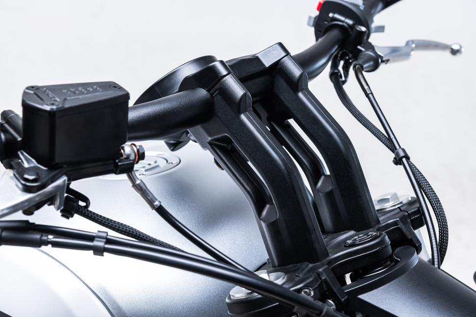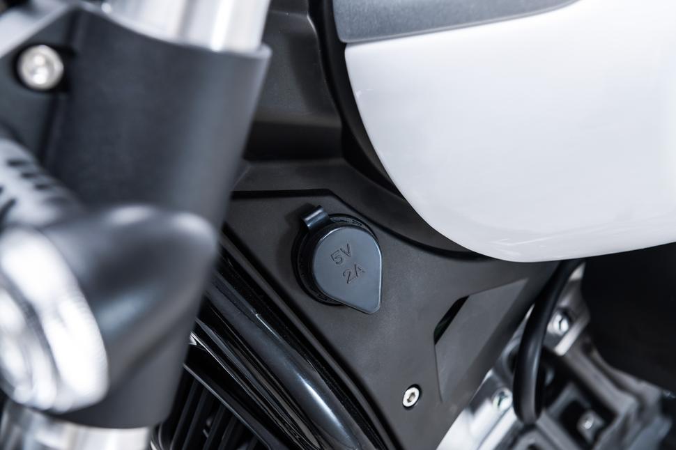 Небольшой рабочий объём и покладистый характер двигателя, а также длинная база и внушительные габариты мотоцикла исключают необходимость в каких-либо электронных ассистентах, кроме уже упомянутой ABS. Что касается света, то тут тоже современные мотивы перекликаются с классикой: круглая фара оснащена кольцевым ходовым огнём, задний фонарь выполнен в виде тонкой диодной полосы, а указатели поворота на стебельках яркие, компактные и вполне заметные.