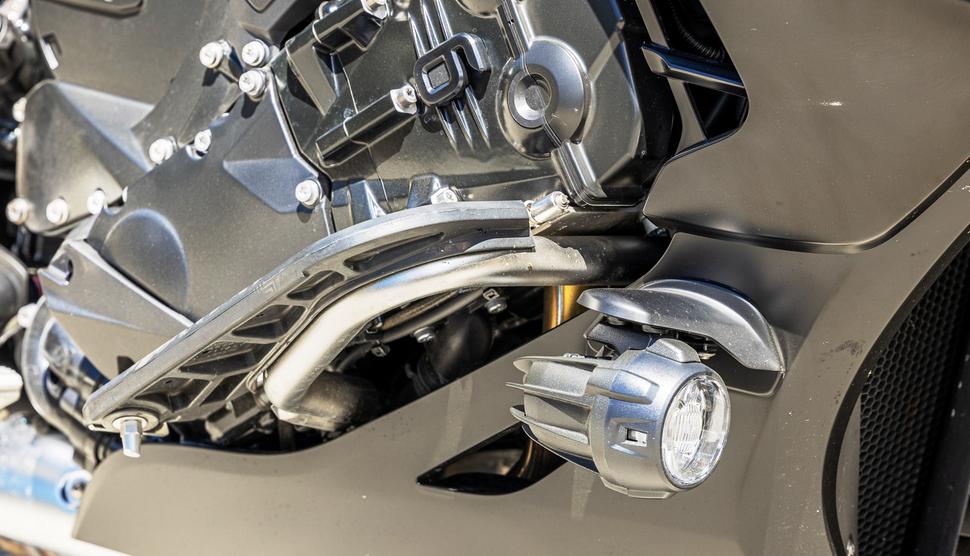 Держите тахометр между 3 и 6 тысячами, и он поедет как классическое авто BMW или Jaguar, только на двух колёсах и с возможностью докрутить до 9 тысяч. Вообще и 8 уже много, потому что максимальная мощность достигается теперь на 6500об/мин, так что крутить его выше особо незачем. Интересно, на что этот двигатель способен в раздушенном состоянии?