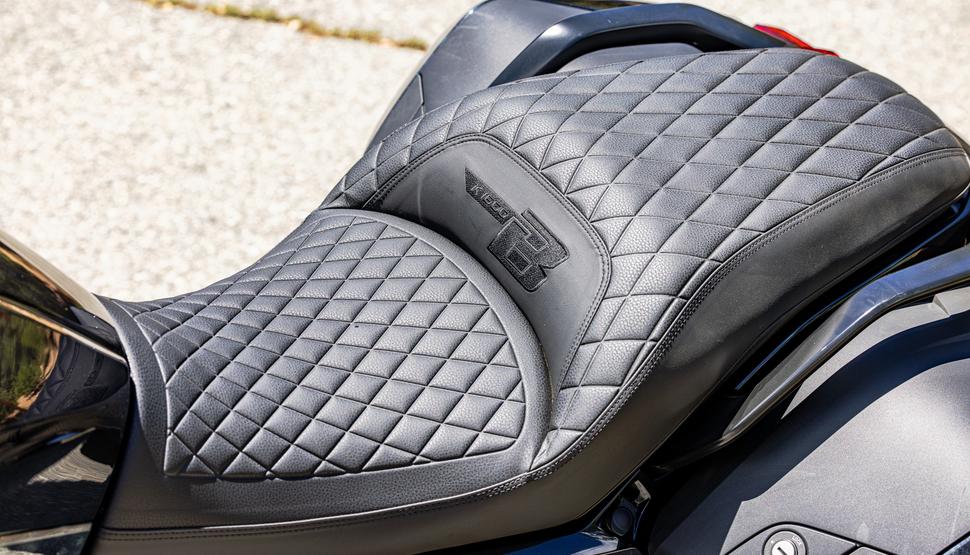 Ветровое стекло с электронной регулировкой почему-то создаёт беспокойство: заставляет долго искать идеальное положение, в котором шум в шлеме исчезнет полностью. Но это легко решается. В целом эргономика создана для тех, у кого короткие ноги и длинные руки, но посадка довольно удобная для райдеров разного роста и пропорций. Опциональное седло серии 719 приятно проминается под тыльным торцом, а опциональные платформы позволяют принять классическую американскую позу "ноги по ветру". По бокам обтекателя расположены закрылки, регулирующие обдув райдера и снижающие турбулентность.