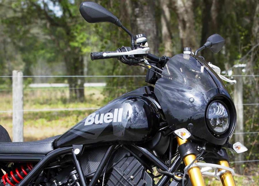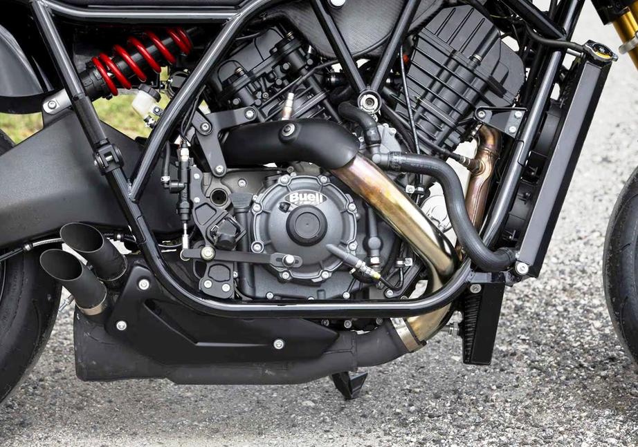 Buell мудро предпочли чёрный кожух радиатора вместо алюминиевого, предложенного Сэндзом на концепте, а ещё предсерийный мотоцикл оснащён той же выхлопной системой, что и у 1190-й платформы, с аналогичными воздухозаборниками. Мелвин говорит, что двигатель чуть иначе настроен в связи с тем, что на Super Cruiser будет стоять один комплект форсунок, без дополнительных дождевальных форсунок, как на супербайке Hammerhead. В целом, это решение весьма оправдано, потому что экономит молодой компании массу времени на исследования и разработки, а также снижает производственные затраты.