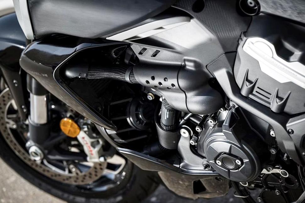 В свою очередь, Granturismo подразумевает интервал проверки зазора клапанов в 36000 миль или 60000км, а масло меняется раз в 9000 миль или 15000км, или раз в два года, что наступит раньше. Это делает владение мотоциклом существенно менее напряжённым и накладным, чем альтернатива, но при этом приносит и прирост производительности относительно старых V-твинов. Новый двигатель шире всего на пару сантиметров, чем Testastretta DVT 1262, а по остальным габаритам V4 даже более компактен. Кроме того, общий вес мотора уменьшился на 5кг.