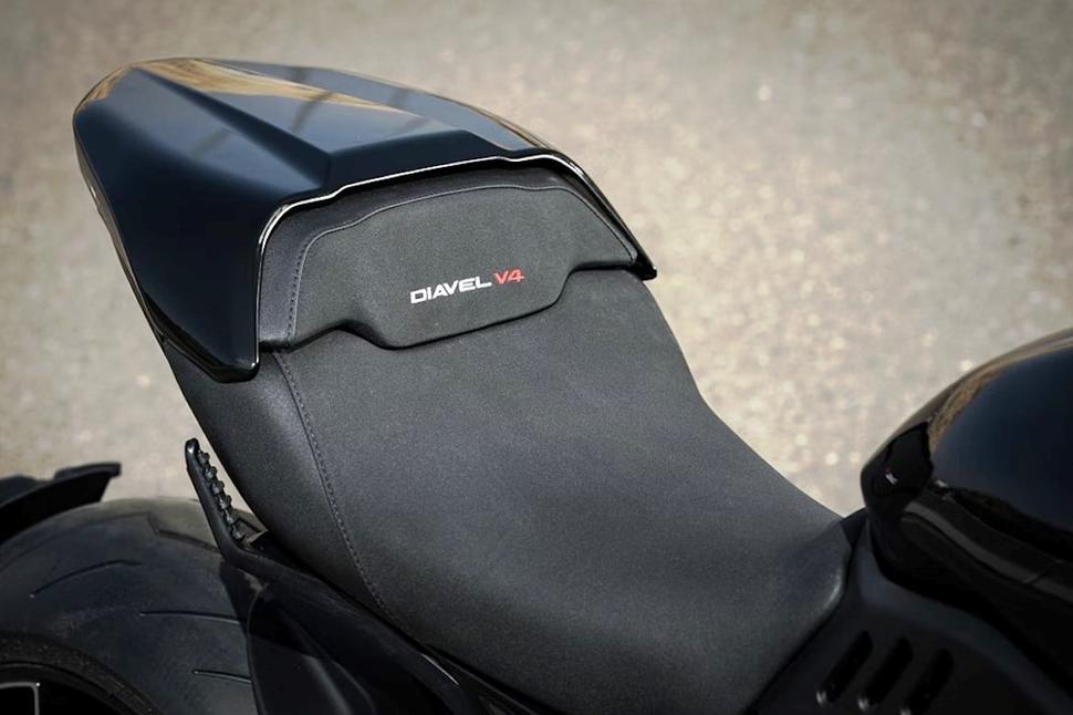 Второй момент - это пассажирское сиденье Ducati Diavel V4. Нашлёпки такого типа иногда называют насестом или жёрдочкой, и вот тут такая характеристика уместна как никогда. Заднее седло кажется шатким и ненадёжным, благо, есть возможность установить пассажирскую спинку.