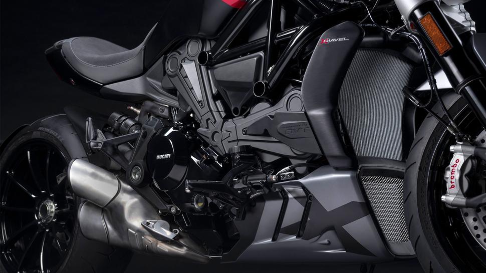Однако, добиться повышения мощности и соответствия стандарту Euro 5, судя по всему, не слишком сложно: Ducati попросту заменили глушитель на новый вариант, созданный на основе выхлопа Diavel 1260. Затем был перекалиброван двигатель, благодаря чему двигатель Testastretta DVT, которым оснащены все модели XDiavel 2021, выдаёт по заявлению производителя 160лс на 9500об/мин и 127Нм на 5000об/мин. Для рынков, которым Euro5 не указ, двигатель XDiavel останется тем же, что и в модели 2020 года - 152лс и 126Нм.