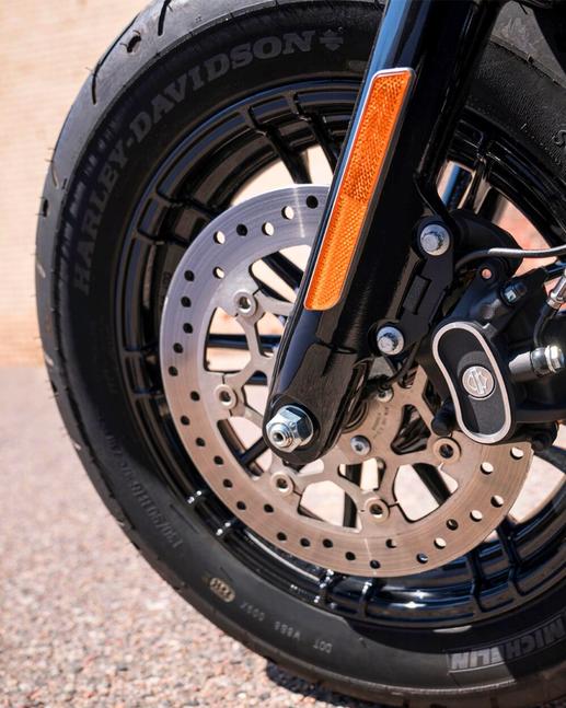 Стоковая версия Forty-Eight Standard практически идентична в скорости и манёвренности, но требует чуть больших усилий на руле для закладывания в поворот, и широкая передняя шина из-за этого более ощутима. В колеях и на срезанном асфальте Standard неприятно рыскает, особенно по мокрому, но я подозреваю, что дело тут в модели резины. Это, кстати, второе, что я бы сделал, обзаведясь одним из этих мотоциклов - поставил более цепкие на мокром асфальте шины.
