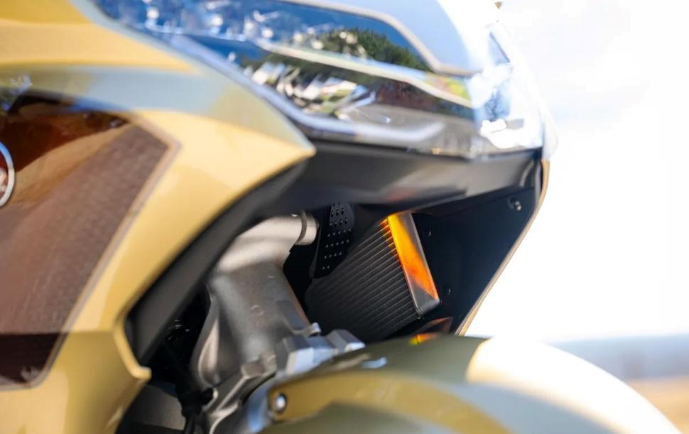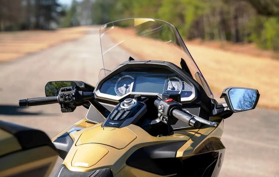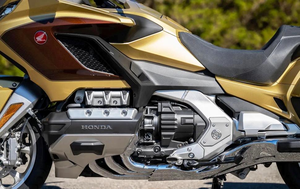 А вот относительно радиальных шестипоршневых суппортов на 384-килограммовой современной Honda Gold Wing 2025 (Gold Wing Tour DCT 2025 года) никаких сомнений нет. И подножки почему-то не жалко стачивать: сначала в левом повороте, потом в правом, и так далее, пока круг не закончится. GL 2025 года весит почти на сто килограммов больше, но компенсирует этот недостаток, выдавая примерно 40 лишних лошадок (120лс на 5500об/мин) и 88Нм (170,8Нм на 4500об/мин) с 1833-кубовой оппозитной шестёрки.