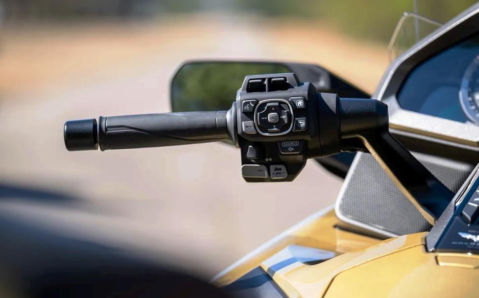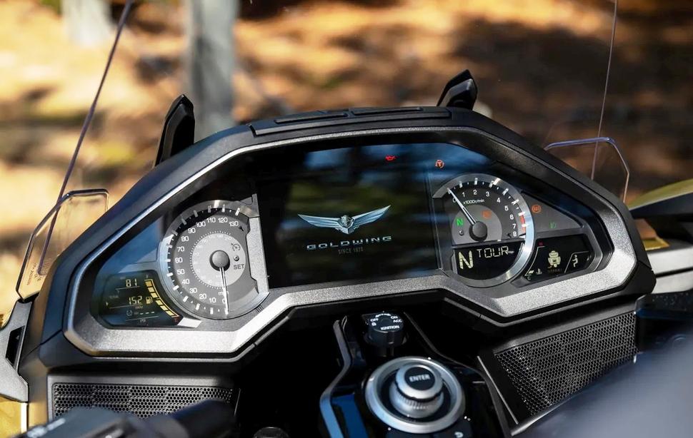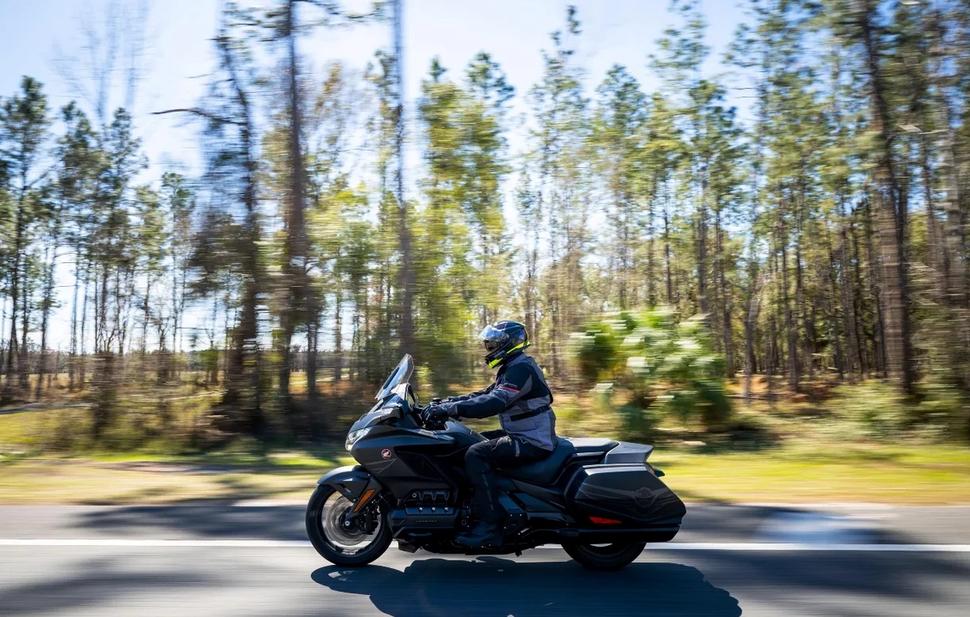 Дорога в тысячу километров на Голдах заняла два дня, и это были два прекрасных, комфортных дня в седле. Двухрычажная передняя подвеска обеспечивает мягкий плавный ход, а коробка DCT переключает передачи мягко и незаметно. Даже в крутых разворотах DCT работает отлично, требуя лишь небольшого поджатия заднего тормоза для сглаживания работы газом. Электронная регулировка преднатяга задней пружины - это неплохо, но этому мотоциклу нужны полуактивные подвески. Круиз-контроль появился на Голдах с GL1200 Limited Edition 1985 года, и с тех пор он толком не поменялся, хотя в наше время флагманы уже вовсю оснащают адаптивным радарным круиз-контролем. Казалось бы, 50-летие топового люкс-турера - отличный повод для внедрения такой замечательной туринговой функции, но Honda так почему-то не кажется.