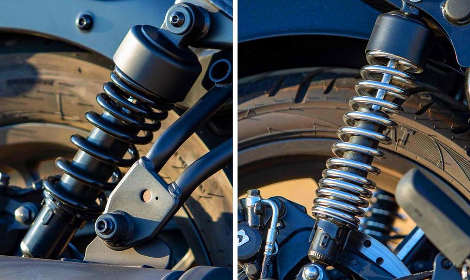 Обе эти модели предназначены для спокойной, размеренной езды, но вот их поведение на дороге ощутимо различается. 41-я вилка и два задних амортизатора на Meteor обеспечивают более мягкую езду, чем жестковатые подвески Rebel. Однако, расслабленное сглаживание Meteor, особенно на отбое, на больших неровностях вызывает болтанку. В остальном Enfield мягкий и комфортный, главное не наваливать.