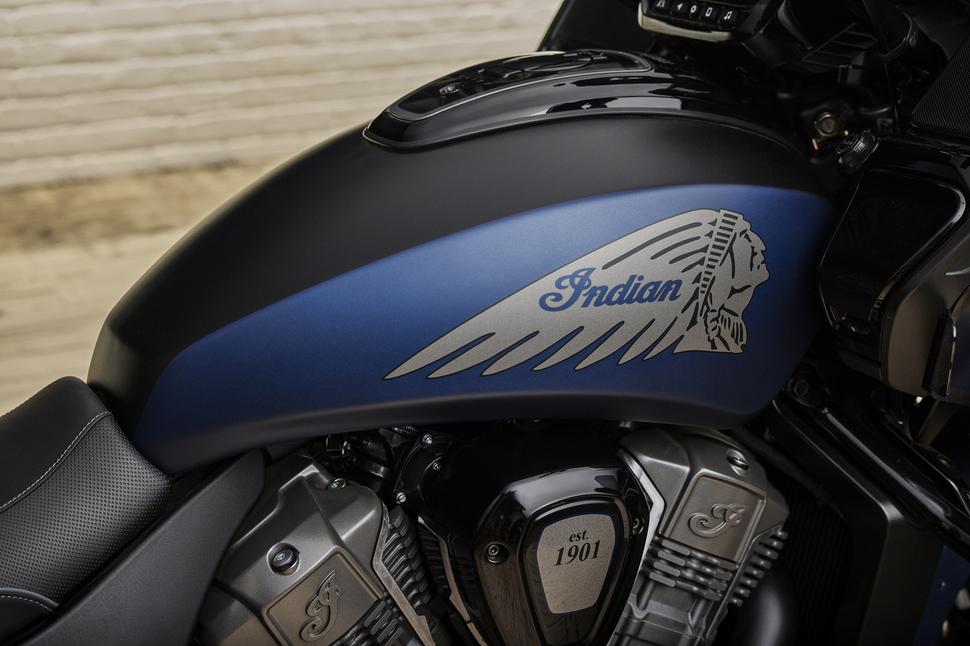 Это будет лимитированная версия тиражом всего лишь 150 экземпляров по всему миру. Elite выпустят в эксклюзивной расцветке Sapphire Blue Smoke с акцентами цветов Black Smoke и Titanium Metallic Smoke, нанесёнными вручную. Основой Elite будет, разумеется, шикарный бэггер со 122-сильным двигателем 108-дюймовым PowerPlus, выдающим 173,5Нм тяги. Мотоцикл оснащён 7-дюймовой TFT-панелью Ride Command с сенсорным управлением, тремя режимами езды, а также электронной регулировкой преднатяга задней подвески от Fox, адаптивной диодной фарой и диодными же ДХО. К туристическим удобствам относятся регулируемое ветровое стекло, платформы Select и подогрев ручек руля. Из других особенностей Challenger Elite обладает круиз-контролем, акустической системой Powerband Audio на 6,5 дюймов с динамиками в кофрах, а также новыми пятилучевыми колёсами Precision Cut.