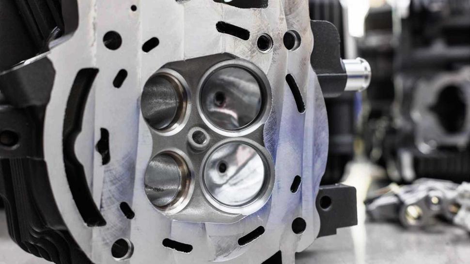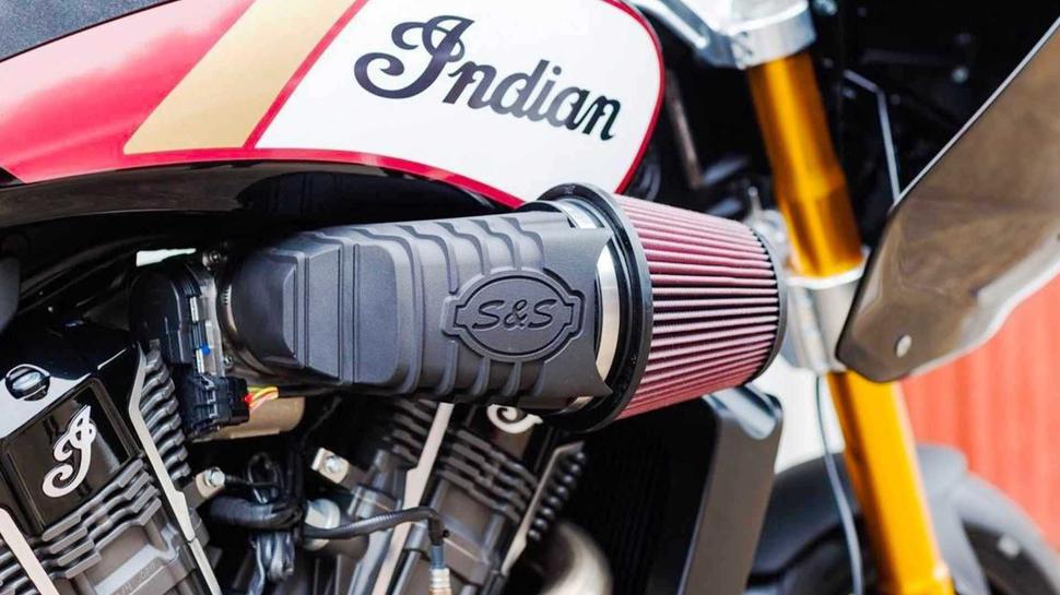 Ясное дело, что Indian не стали бы выставлять какой-нибудь овощной круизёр на трек. В нём было перебрано и доработано для гонок буквально всё, и не осталось ни единой неоптимизированной мелочи. Крупнокубатурные 110-миллиметровые поршни - первое свидетельство серьёзного подхода Indian. Портированные на ЧПУ головки и кастомные распредвалы подкрепляют их намерения.