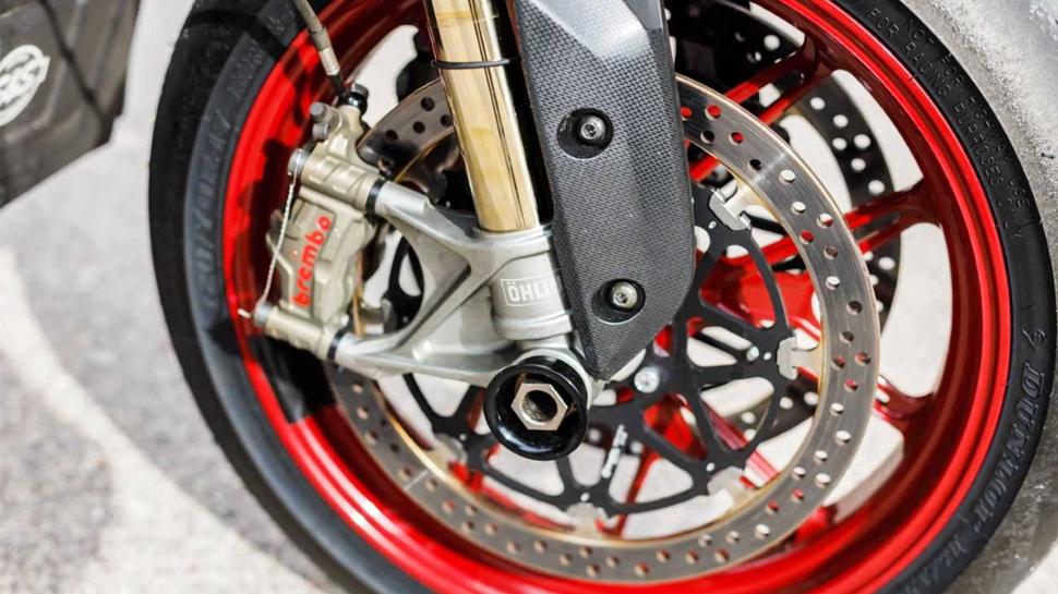 Неудивительно, что специально разработанные компоненты подвесок были предоставлены Ohlins, а комплект 17-х колёс обут в топовые модели трековых сликов. Траверсы от S&S обладают дополнительными регулировками, а их фирменные фрезерованные компоненты - передняя ось, крышка сцепления, цепная трансмиссия и сборка задней оси - экономят дополнительные граммы. Тормозные контуры вообще представляют собой сборище громких имён: Brembo, Beringer, SBS, Hayes, Spiegler, и Galespeed.