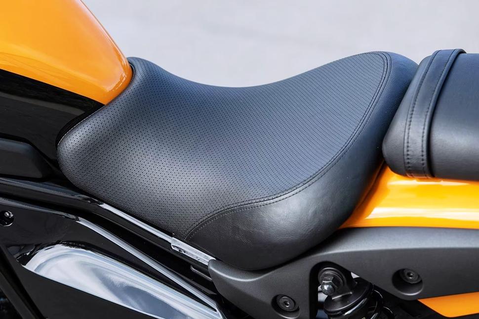 В плане эргономики Eliminator подходит для самого широкого круга райдеров. Его седло высотой 73см будет удобно и для невысоких людей, но тут стоит отметить, что его собрат, 649-кубовый Vulcan S, имеет высоту по седлу 70см в стоке. Но на Vulcan S подножки вынесены вперёд, а у Eliminator они расположены по центру, как на дорожниках. И если всё это вам кажется это странным, то это только потому, что вы не знаете историю первых Eliminator.
