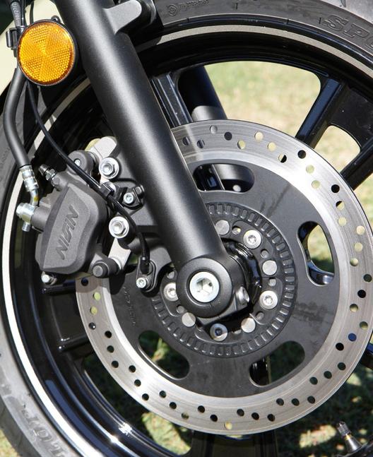 Тормоза тоже неплохо справляются. Спереди имеется 300-миллиметровый диск с двухпоршневым суппортом Nissin, а сзади - 250-й диск с однопоршневым Nissin-ом. Информативность не слишком на высоте, но вот начальный закус ровно тот, какой нужен начинающим райдерам, а по мере выжима развивается отличное тормозное усилие. Штатная ABS позволяет жать на тормоз чуть увереннее в непростых ситуациях. Да, тормоза тут сложно назвать "унаследованными от спортбайка", но они идеально соответствуют характеру и природе Vulcan S. Педаль заднего тормоза расположена очень удачно.