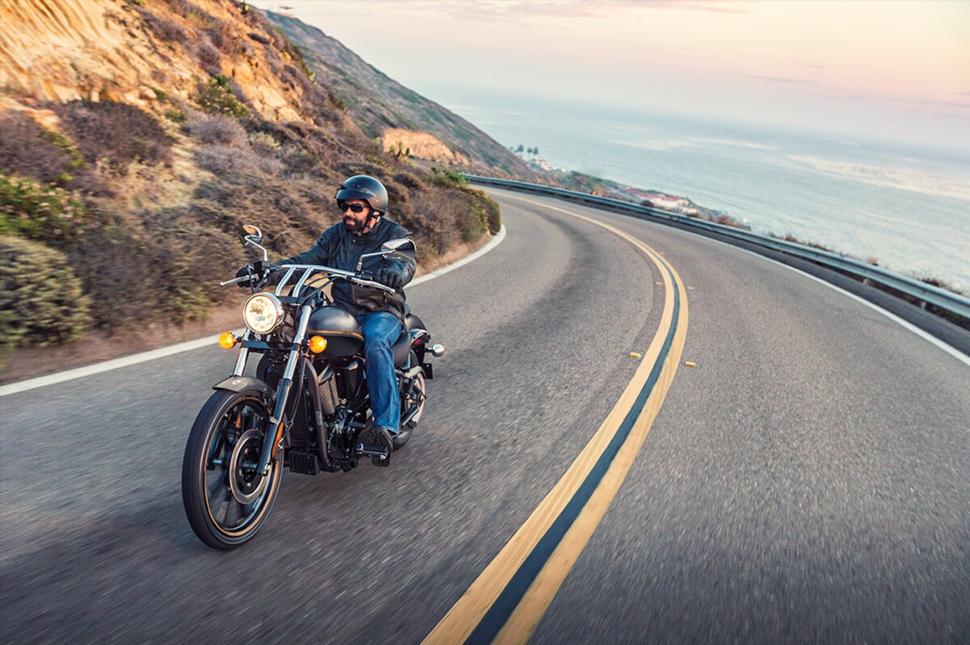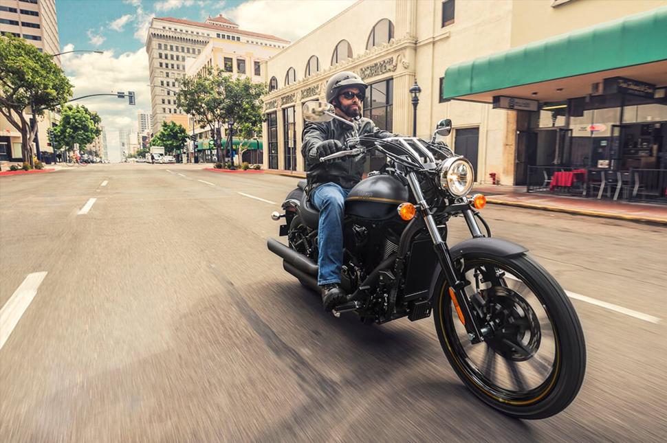 Тяга Kawasaki Vulcan 900 Custom линейная, и более сочная на низах, чем ожидаешь от короткоходного четырёхклапанного двигателя. Достигая 78 Нм на 3500, он обеспечивает доступный запас ускорения в любой момент, даже на городских магистралях. А ещё он показывает на магистралях превосходную устойчивость, и узкий Dunlop не ёрзает на асфальте, что впечатляет. При этом посадка не превращает райдера в парус, что тоже неплохо.