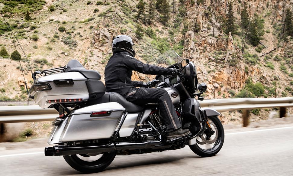 Сзади газомасляный амортизатор вносит свой вклад в мягкость езды CVO Limited. С помощью регулировочного колёсика он легко и быстро настраивается по преднатягу пружины, благодаря чему можно менять жёсткость подвески под езду в одиночку, с грузом или с пассажиром. Это важно, учитывая грузоподъёмность мотоцикла.