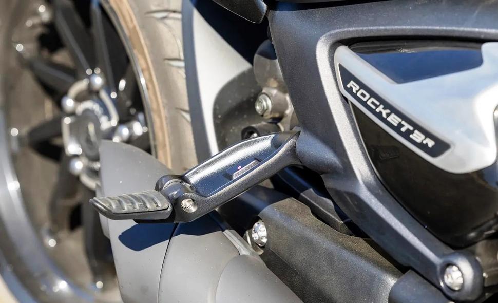 Возьмём, к примеру, пассажирские подножки. Они складные, и складываются они дважды: сначала откидываются от подрамника, а затем ещё раз, открывая собственно подножку. Зато когда они сложены, то так аккуратно упрятаны в облицовку, что их легко не заметить. И так во всём, вплоть до рычажной системы амортизатора Rocket 3 скрывает в своём массивном шасси уникальные инженерные сюрпризы. Отделка и подгонка всех элементов просто выше всяких похвал и на голову выше более дорогого Diavel.