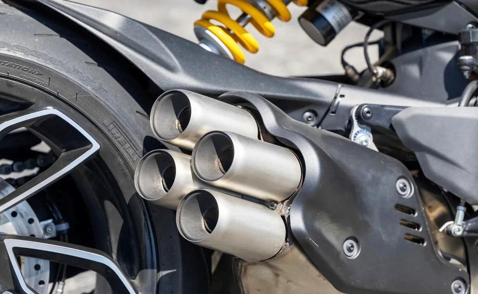 Ещё одно радикальное отличие Ducati Diavel V4 от Rocket 3 - это качество сборки и отделки. Хвостовой обтекатель шатается, из пластиковой боковой крышки куда-то делся болтик, а фальшивые крышки двигателя выглядят как пластиковый корсаж на костюме Бэтмена - довольно кринжово, если вы не фанат.