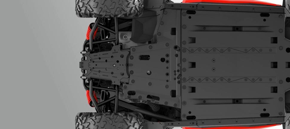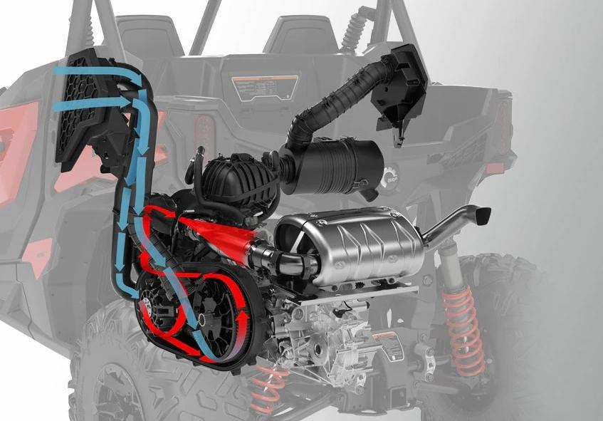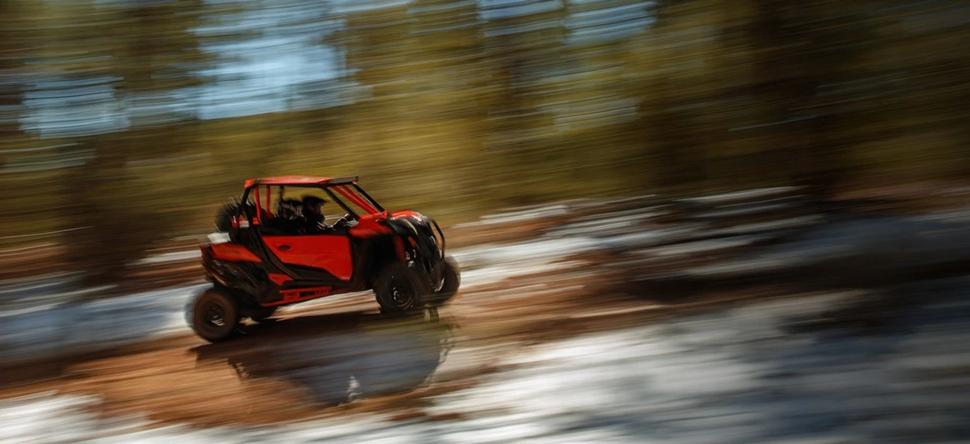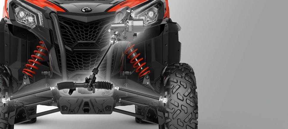 Can-Am ставит один и тот же двигатель на две модели - 1000 и 1000R Maverick Sport. Это 75-лошадный 976-кубовый инжекторный V-twin от Rotax, управляемый электронной ручкой газа iTC, с возможностью выбора топливной карты, наиболее подходящей под условия и стиль езды. Двигатель приводит аппарат в движение через вариатор Quick Response System, обладающий экстра-низкой пониженной "передачей" и активным контролем спуска. Это отлично проработанный и приятный в управлении мотор, способный создать улыбку практически на любом лице.