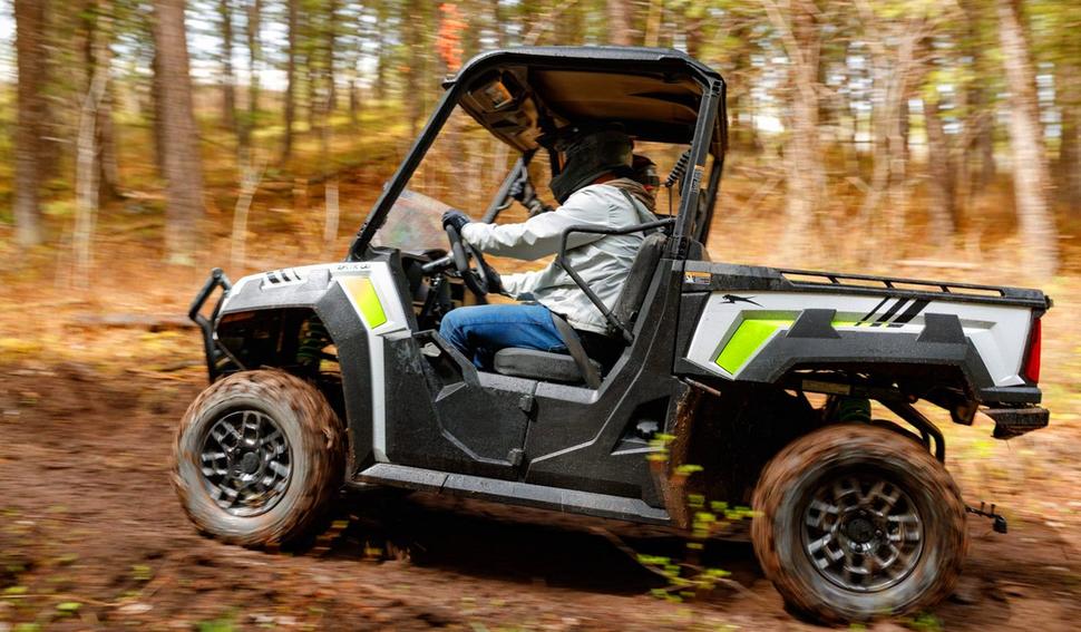 - SE в расцветке Phantom Grey с акцентами Electric Blue, подвесками и клеткой безопасности в цвет, вариатором ADAPT, передним бампером, лебёдкой на 3500 фунтов (1587кг) и боковыми бамперами