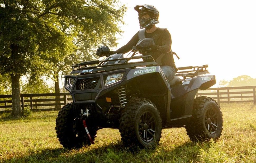 Флагманская модель Arctic Cat Alterra 700 основана на 695-кубовом одноцилиндровом двигателе, ходы подвесок составляют 10 дюймов - 254 мм, клиренс - 279 мм, колёсная база - 52 дюйма (1320 мм), передние амортизаторы регулируются. Модель способна буксировать 1050 фунтов (476 кг), оснащена стальными багажниками и поставляется в цвете Earth Blue. Для неё доступен комплект тюнинга Alpine Kit (66-дюймовый стальной отвал, лебёдка, подогрев рукояток и курка газа).