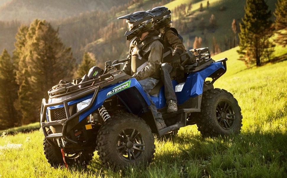 Созданная для начинающих и для экономных модель Arctic Cat Alterra 300 оснащается 270-кубовым двигателем, приводом 2WD, передним и задним багажниками с допустимой нагрузкой в 68 кг каждый, передней подвеской с двойными А-образными рычагами, маятниковой задней подвеской. Обе подвески имеют ходы в 5,7 дюймов - 145 мм, а буксировать аппарат способен 500 фунтов, это 226 кг. Модель поставляется в цвете Earth Blue.
