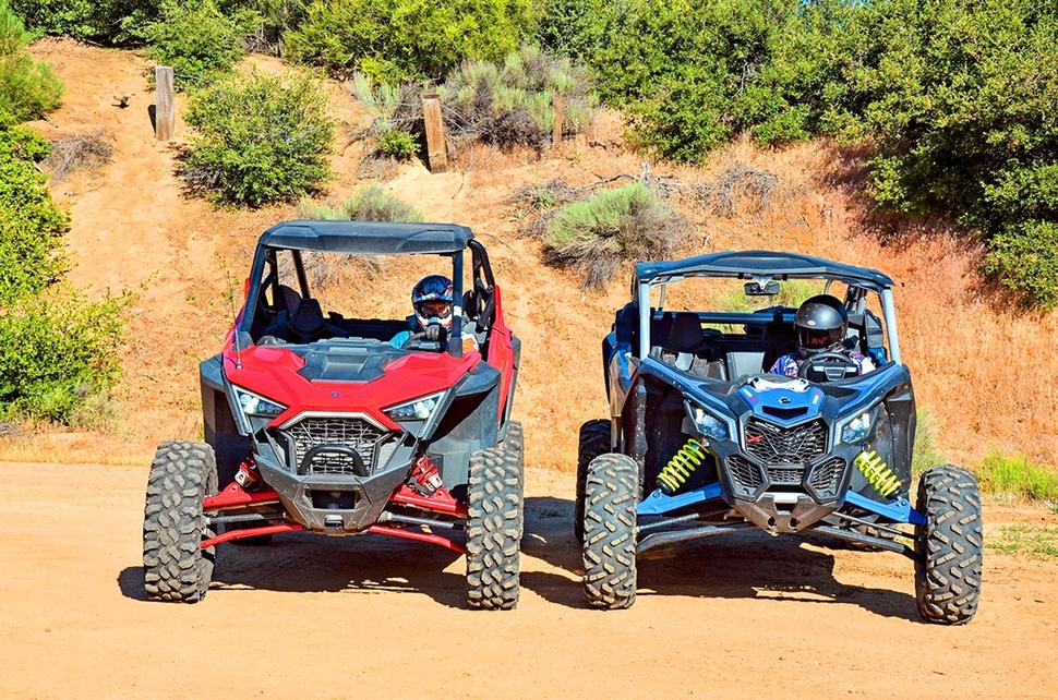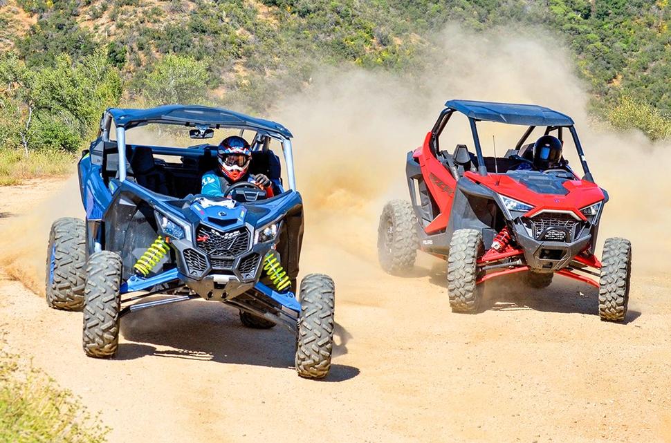 Для устрашающе быстрой езды по неровной местности на полном газу лучше подойдёт Can-Am X3. Он неплохо управляется на скорости на любом ландшафте, хоть и отдаёт в руль. При поддомкрачивании компоненты его подвесок вяло провисают, но Can-Am хотя бы предоставляет возможность иметь длинные ходы.