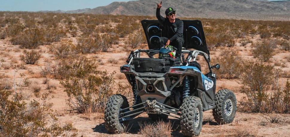 Штатная крыша Can-Am Maverick X3 Turbo RR не только защищает от солнца и осадков, но содержит в себе водозащищённую акустическую систему на 6 динамиков с возможностью подключения по Bluetooth, многоцветной диодной подсветкой, усилителем RMC и аудио-ресивером Rockford Fosgate.
