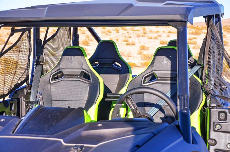 В первую очередь безопасность людей в кабине вездехода зависит от водителя (и водителей других вездеходов поблизости), но Honda оснащает Talon 1000X-4 дополнительным контуром безопасности в виде сеток на окнах, которых нет на аналогичных моделях конкурентов. Все пассажирские места оснащены хорошими поручнями, так что останется только оснастить вездеход диодной подсветкой, чтобы его было видно отовсюду - и можно путешествовать далеко и с удовольствием.