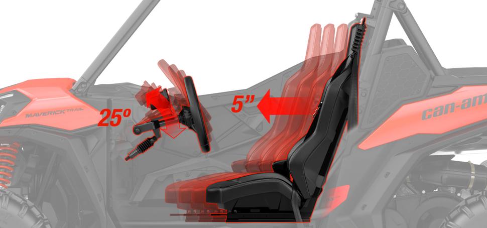 Maverick Trail бывают с двумя вариантами двигателя и в двух комплектациях: 800-кубовый V-твин, выдающий 51 лс и 976-кубовый (модель 1000), выдающий 75 лошадей. 50-дюймовые Trail оснащаются 26-дюймовыми шинами Carlisle ACT на стальных дисках, имеющих сзади ход в 10,5 дюймов (это 26,67 см). Модели Trail DPS оснащаются электроусилителем руля, двухтонными полудверями, чёрными алюминиевыми колёсами и сиденьями Ergoprint. Водительское сиденье на моделях Sport и Trail имеет регулировку с ходом в 12,7 см.