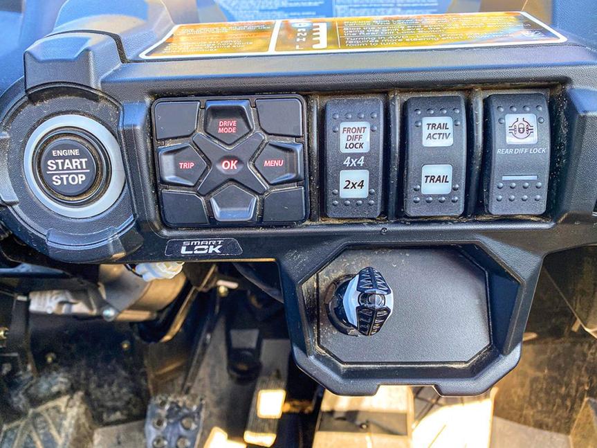 Can-Am оснащают Commander XT-P топовым передним дифференциалом Smart-Lok. Изначально эта система была создана для горного вездехода X3, и она не только показывает состояние переднего дифференциала, но и анализирует при помощи специального компьютера различные аспекты движения вездехода, выбирая наиболее подходящий режим дифференциала. Конечно, к ней требуется некоторое привыкание из-за большого количества переключателей и индикаторов, и кому-то может даже показаться, что блокируемый вручную дифференциал был бы удобнее. Однако, автоматический дифференциал Smart-Lok работает, и работает хорошо - посадить Commander в грязь не так-то просто даже “профессионалу” в этом вопросе. Сзади стоит неблокируемый дифференциал, который можно использовать для более резких поворотов, но, что приятно, этот вездеход не оставляет чёрных следов шин на асфальте.
