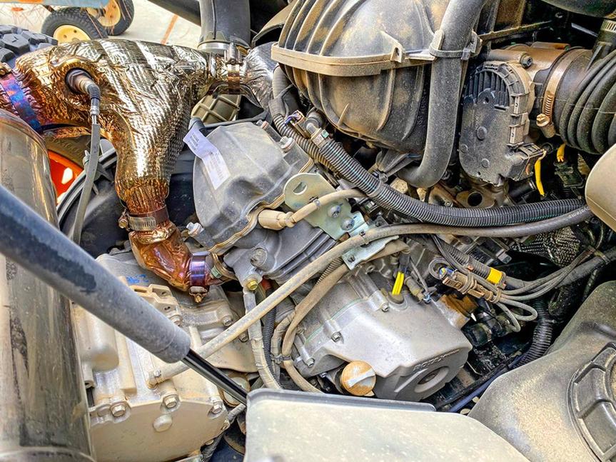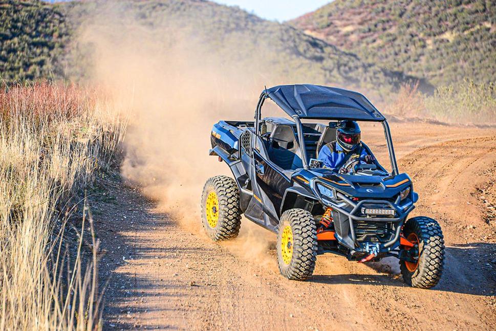 Can-Am оснащает проверенным временем 976-кубовым V-твином свои квадроциклы, и он же ставился в первое поколение Commander и некоторые Maverick. В новом Commander этот мотор снова в деле, и он весьма быстр! Новый Can-Am Commander XT-P легко и быстро разгоняется до 115км/ч. Конечно, он набирает эту скорость не как какой-нибудь турбированный вездеход, вжимая головы и плечи в спинки сидений, но весьма быстро и весело. Мотор выдаёт 100лс, и не слишком при этом громко шумит, по крайней мере на взгляд сидящих в кабине. Со стороны же звук весьма приятный и внушительный, обозначающий вездеход на местности.