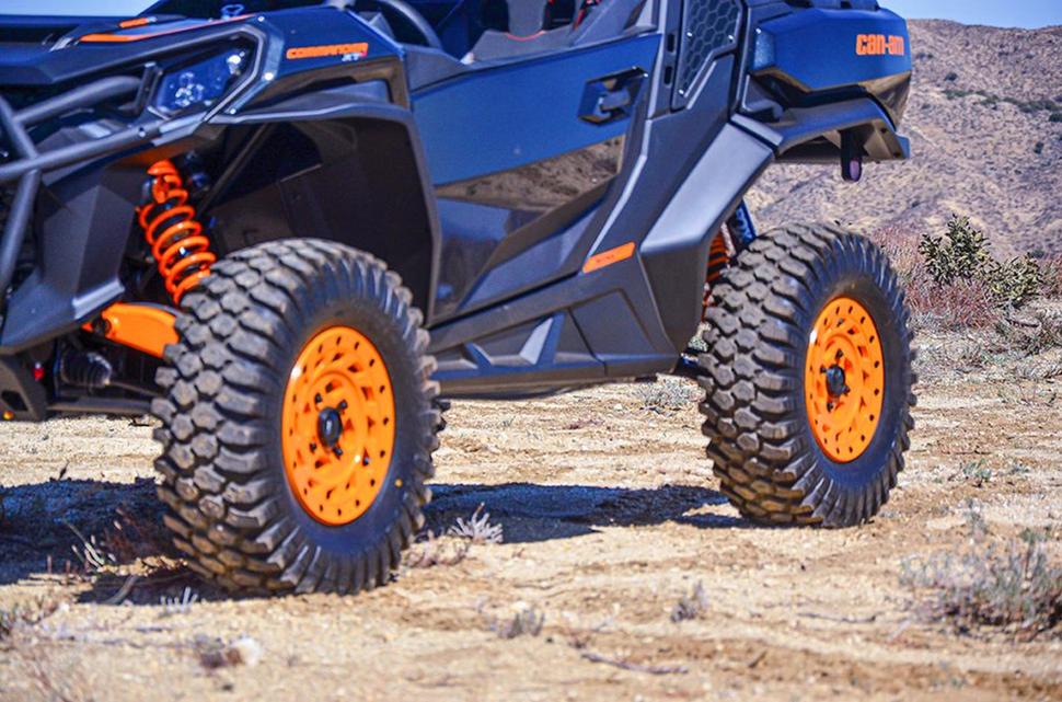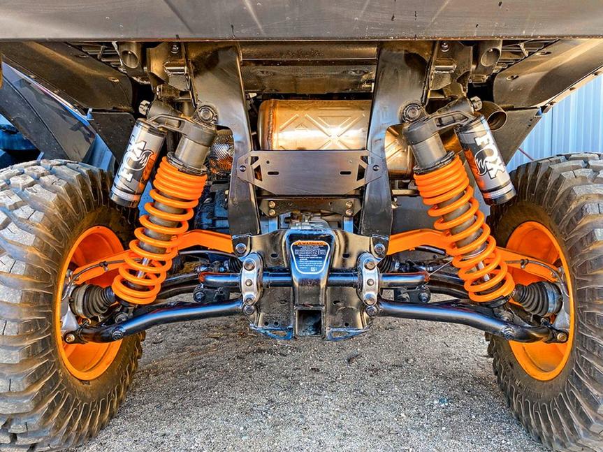 Все четыре подвески Commander оснащены большими стойками 2.5 Fox QS3. В стоковой форме пружины амортизаторов скорее жёсткие, и даже кажется, что пол вездехода (и его кузов) расположен слишком высоко, что может сделать его неустойчивым. По-видимому, производитель заложил в подвески возможность сразу нагружать машину грузом, потому что справляется он с его перевозкой великолепно, даже на крутых подъёмах не пытаясь задрать колёса и сохраняя полную устойчивость, за которую нужно благодарить жёсткие пружины и шины XPS Hammer Force шириной 10 дюймов (254мм) с плоским профилем.