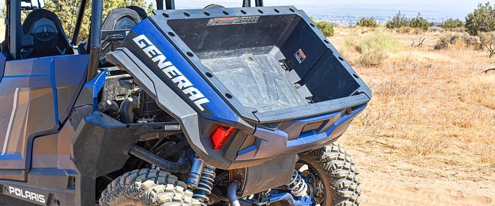 Polaris General — это большой утилитарный вездеход с объёмистым самосвальным кузовом снаружи и спортивный багги - внутри. Любители этого класса техники отнеслись к такому сочетанию с полным восторгом, и Polaris отреагировал на это выпуском General XP 1000, оснащённым более длинноходными подвесками. А четырёхместная версия Polaris General XP 4 1000 Deluxe позволяет ехать большой весёлой компанией, взяв с собой большой объём багажа - и при этом вполне быстро.