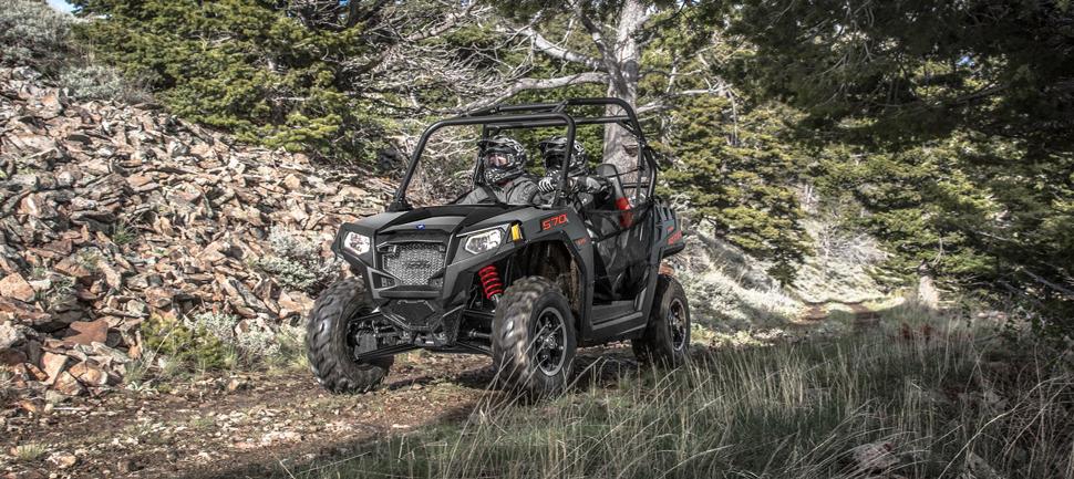 На вездеход Polaris RZR 570 EPS установлен уже знакомый нам двигатель - четырёхтактный одноцилиндровый ProStar жидкостного охлаждения объёмом 567 кубиков, который Polaris устанавливал в нескольких предыдущих моделях. Этот 45-лошадный двигатель ставился в линейки RZR, Ranger, ACE и Sportsman. RZR имеет впрысковую систему подачи топлива и полный привод Polaris On Demand. Крутящий момент передаётся через вариатор разработки Polaris, а ещё эта модель может быть укомплектована электроусилителем рулевого управления.