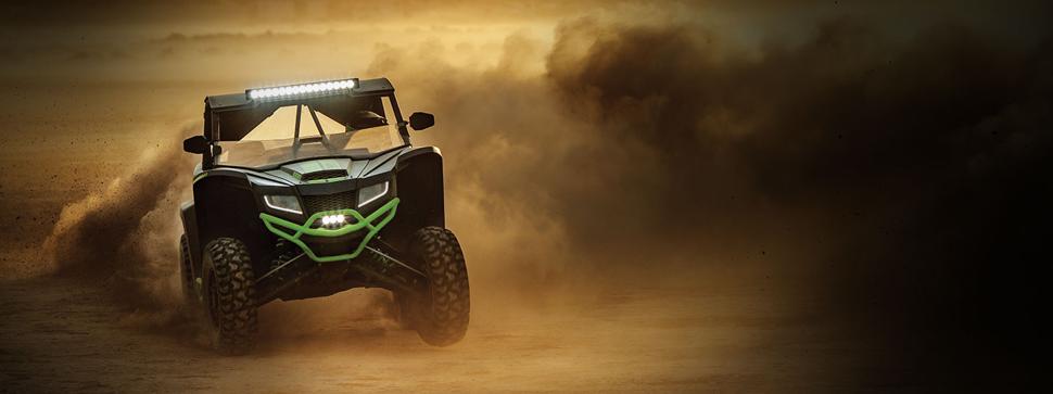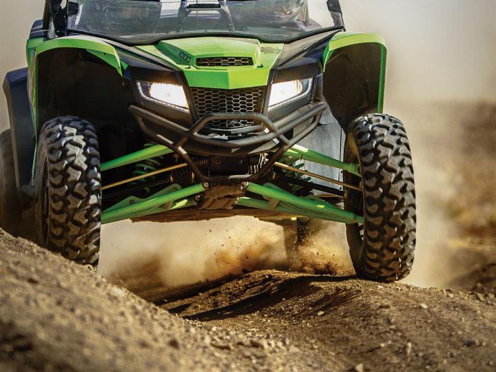 Квадроцикл Textron Wildcat XX приводится в движение рядной четырехтактной тройкой объемом 998 куб. см., появившейся на свет в результате партнерства Textron, Arctic Cat и Yamaha в сфере снегоходов. Этот приемистый двигатель выдает умопомрачительные 125 лс. Он соединяется с бесступенчатой трансмиссией с муфтами Team Rapid Response. В большинстве ситуаций вам просто не понадобится больше мощности, чем способен произвести этот мотор. А если все-таки понадобится, то совсем скоро появится турбированная версия. Как и в случае со всеми моделями XX, мощность очень хорошо сбалансирована, и добавляет очков к общему впечатлению от квадроцикла. Еще одна машина в ваш список, на которой непременно надо прокатиться.