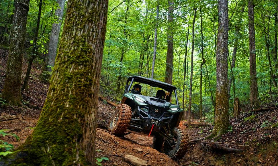 В Горном режиме Yamaha Wolverine RMAX2 1000 легко ползает по большим камням с отличным запасом тяги и без единого признака срыва. При этом умелая работа с газом позволяет на ускорении покорить самые крутые подъёмы - даже когда полная мощность не нужна, приятно знать, что она доступна.