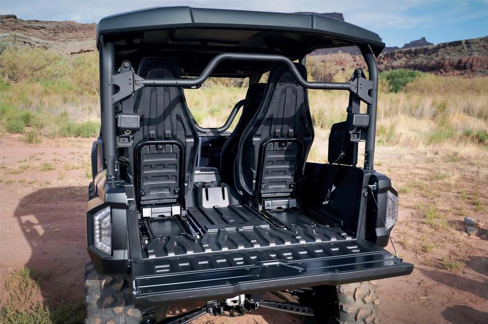 - Наклонный кузов в Wolverine RMAX2 1000 и сдвижные задние сиденья в RMAX4 1000. Максимальная масса перевозимого багажа для обеих моделей составляет 600 фунтов (272 кг), а буксируемого - 2000 фунтов (907 кг). Для буксировки модели оснащены 2-дюймовым сцепным устройством.