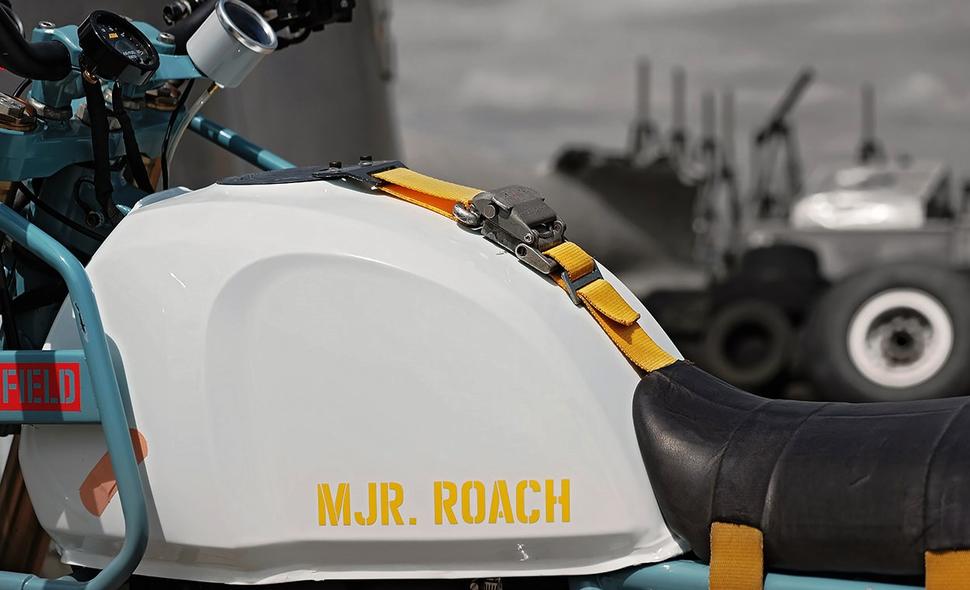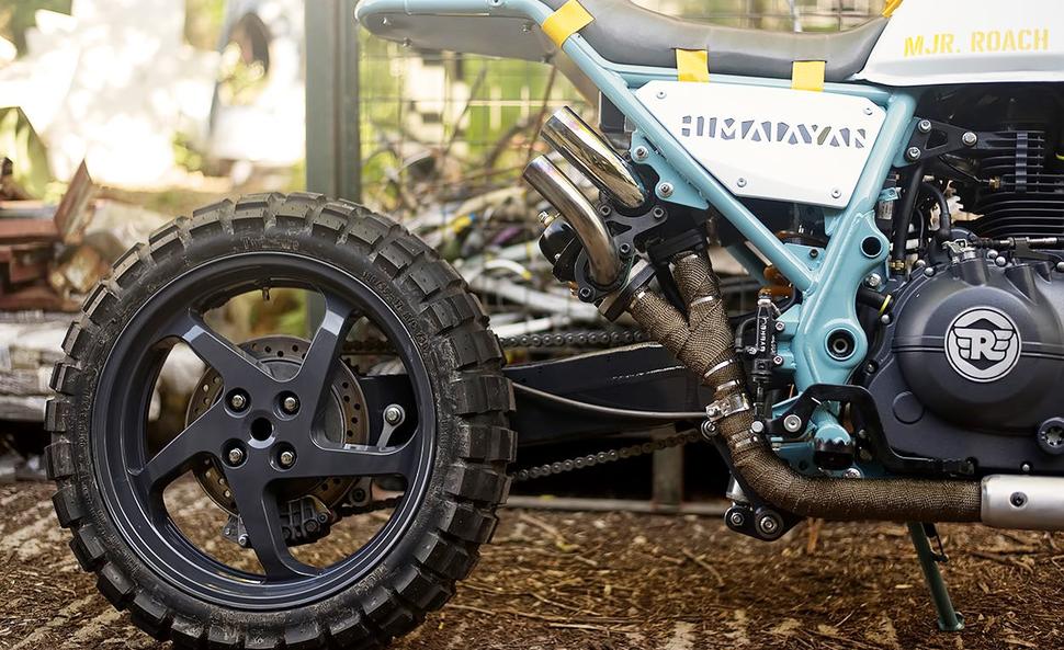 Практически всё, из чего состоит MJR Roach, было взято по сути из мусорки - верней, со склада невостребованных запчастей мастерской, куда попадают заменяемые в процессе ремонта и обслуживания узлы. Например, двигатель они взяли с разбитого и разобранного мотоцикла, а уже под него раздобыли целёхонькое шасси Himalayan. Вилку заменили на заниженную кроссовую, перебрав её и заменив клапана, причём вместе с передней подвеской на проект перекочевало и 21-дюймовое колесо.