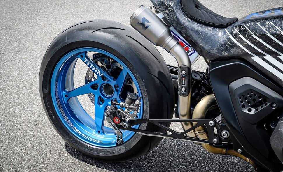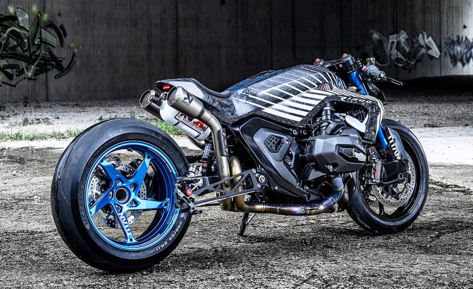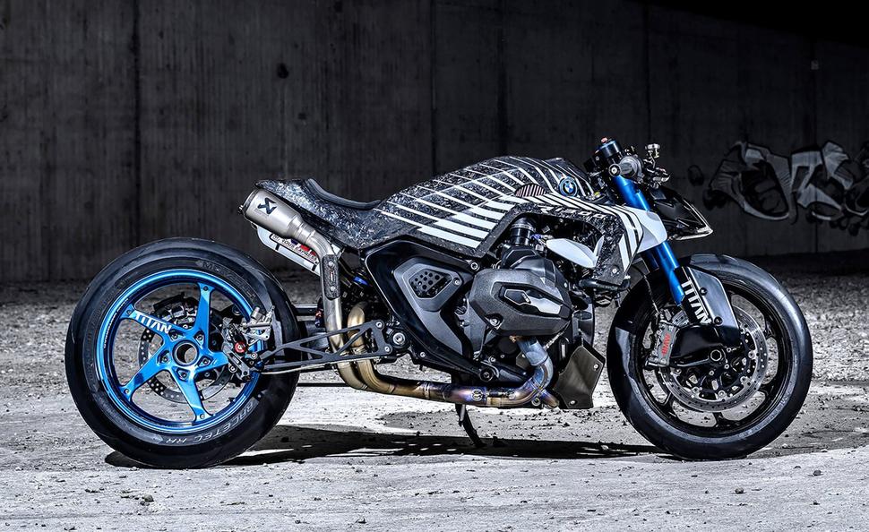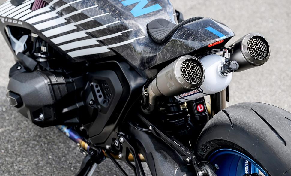 Для этого BMW R 1300 R был лишён обвеса и подрамника и собран заново с множеством кастомных деталей. Теперь он обрамлён обвесом-монококом, завораживающая конструкция из штампованного карбона которого контрастирует с динамичной ливреей.