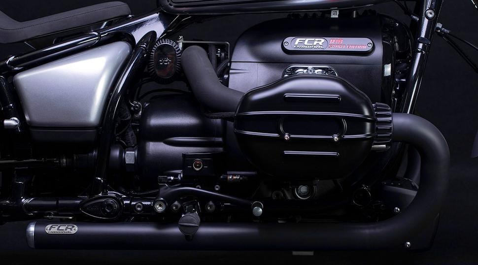 Это довольно необычный подход для FCR, обычно являющихся приверженцами классического никелированного винтажного стиля. Но этот стиль BMW R 18 имел в стоковом состоянии.