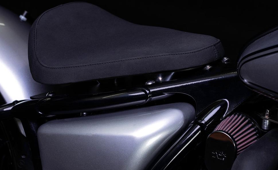 Штатно на BMW R 18 стоит пухлое сиденье, прилегающее к раме. FCR визуально облегчили это место, установив компактное одиночное сиденье, делающее посадку несколько ближе к рулю.