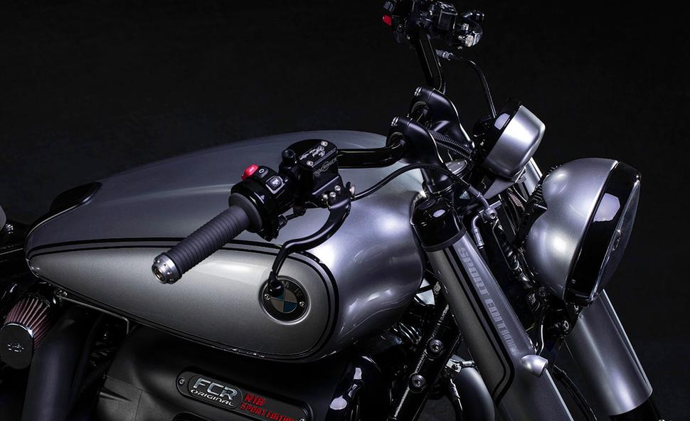 Конечно, главное отличие от стока BMW R 18, которое бросается в глаза — это ставший намного более строгим и стильным выхлоп. Но поменялись и многие мелочи - более плотно облегающие крылья, новый более узкий и прямой руль. FCR поставили на него штатные (весьма неплохие) пульты, но заменили главные цилиндры на руле на Beringer. Компактные поворотники собственного изготовления FCR поставили на самодельные же кронштейны, а сзади они выполняют также функцию стоп-сигнала.