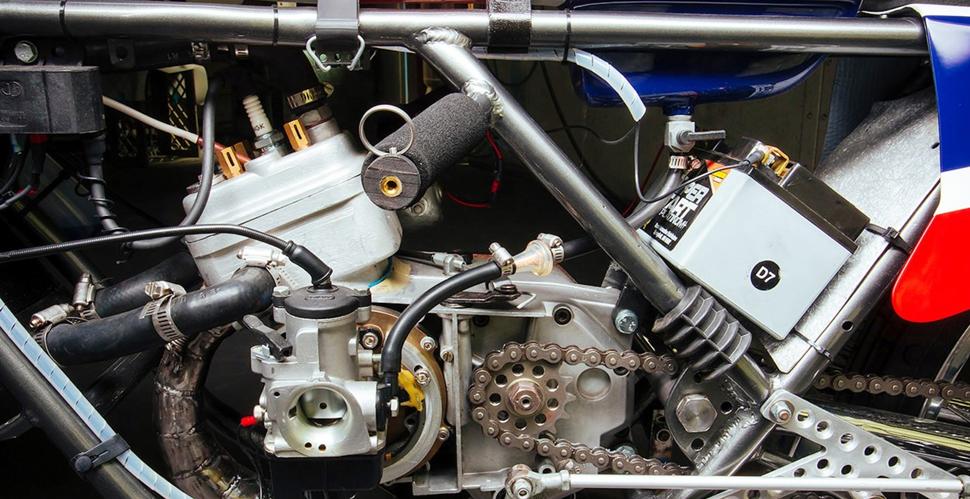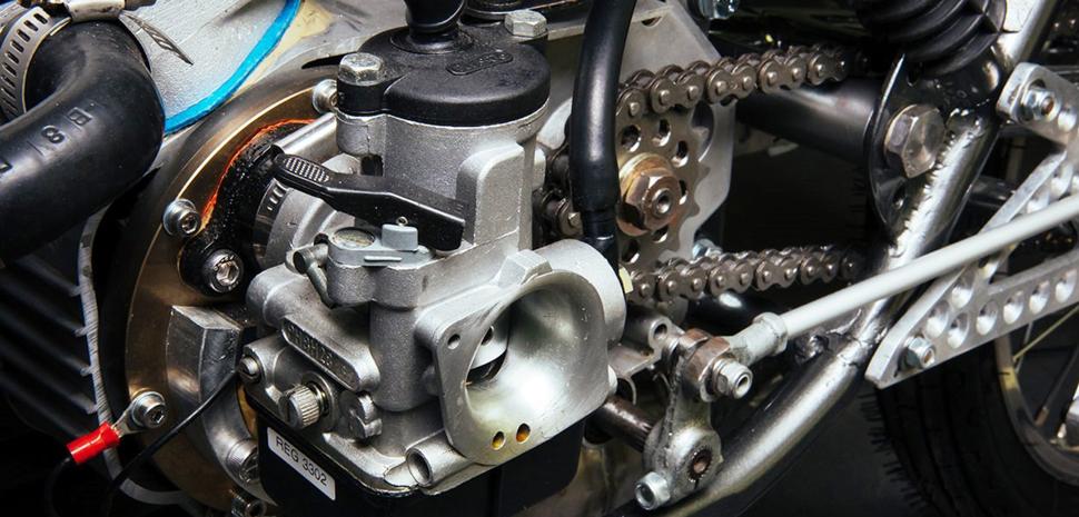 Один из наиболее сложных этапов - это переделка кожуха поворотного клапана для установки туда 28-миллиметрового карбюратора Dell’Orto (ЧеЗет приехал с 22-м карбом, но судя по имеющимся документам, в семидесятых 28-миллиметровые карбы на GP-шных мотоциклах применялись намного чаще). Махловиц в итоге полностью переделал впускной манифольд, ухитрившись очень точно соблюсти зазоры, что потребовало бессчётных часов работы в программах для проектирования.