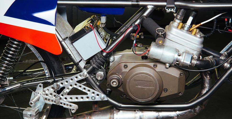 Вместо оригинального кулачкового зажигания было установлено CDI от KTM 50, а коленвал заменён на короткоходный. Мотор остался сцепленным с родной шестиступой коробкой с короткими передачами, с которой он был выпущен с завода.
